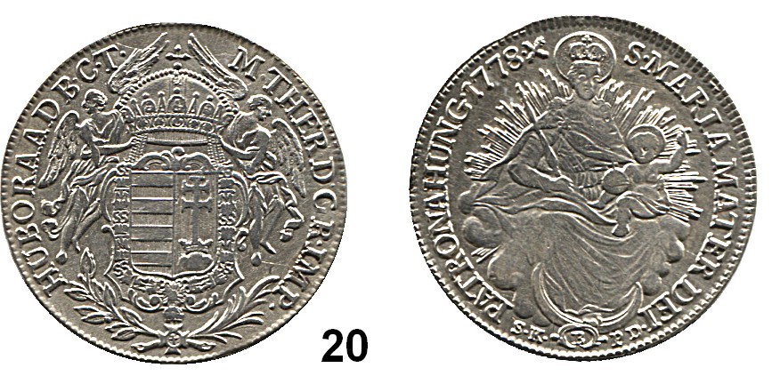 0020. Haus Habsburg Maria Theresia 1740 – 1780 1/2 Madonnentaler 1778 B, Kramnitz. 13,86 g. Herinek 741. Römisch Deutsches Reich Katalogseite Auktion: 164 Losnummer: 0020 Erhaltung: Sehr schön Schätzpreis: 100,00 € Zuschlag: 140,00 €