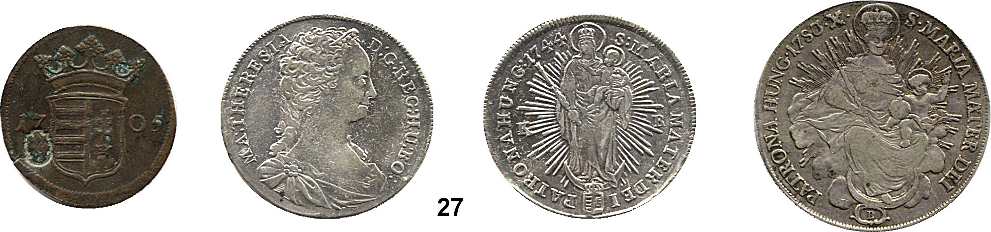 0027. Haus Habsburg LOTS LOTS LOTS LOT. von 36 ungarischen Prägungen. Darunter 10 Poltura 1705 mit Gegenstempel; 6 Kreuzer 1670, 1671; 15 Kreuzer 1677; 1/2 Madonnentaler 1744 und Madonnentaler 1783. –Bitte besichtigen– Römisch Deutsches Reich Katalogseite Auktion: 164 Losnummer: 0027 Erhaltung: Schön bis sehr schön Schätzpreis: 200,00 € Zuschlag: 575,00 €