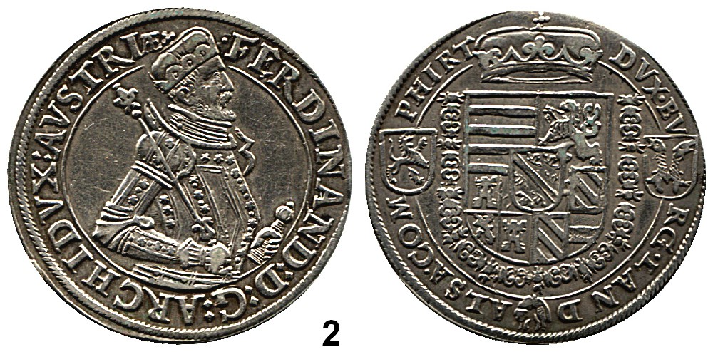 0002. Haus Habsburg Erzherzog Ferdinand II. 1564 – 1595 Taler o.J., Ensisheim. 28,37 g. Voglh. 84. Dav. 8088. Index: Elsaß Römisch Deutsches Reich Katalogseite Auktion: 164 Losnummer: 0002 Erhaltung: Sehr schön Schätzpreis: 150,00 € Zuschlag: 300,00 €